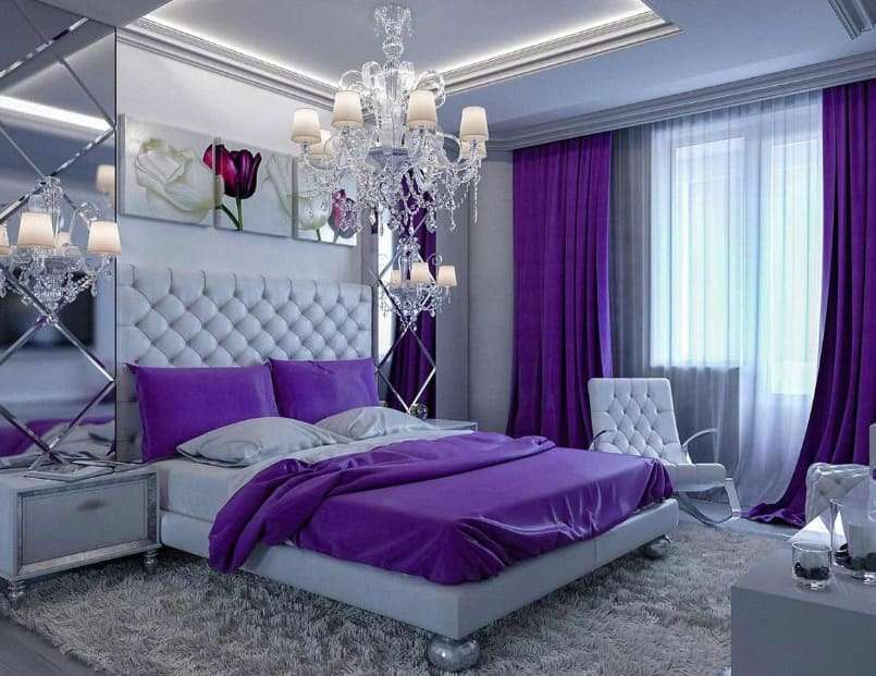 Стили дизайна спальни с фиолетовым цветом