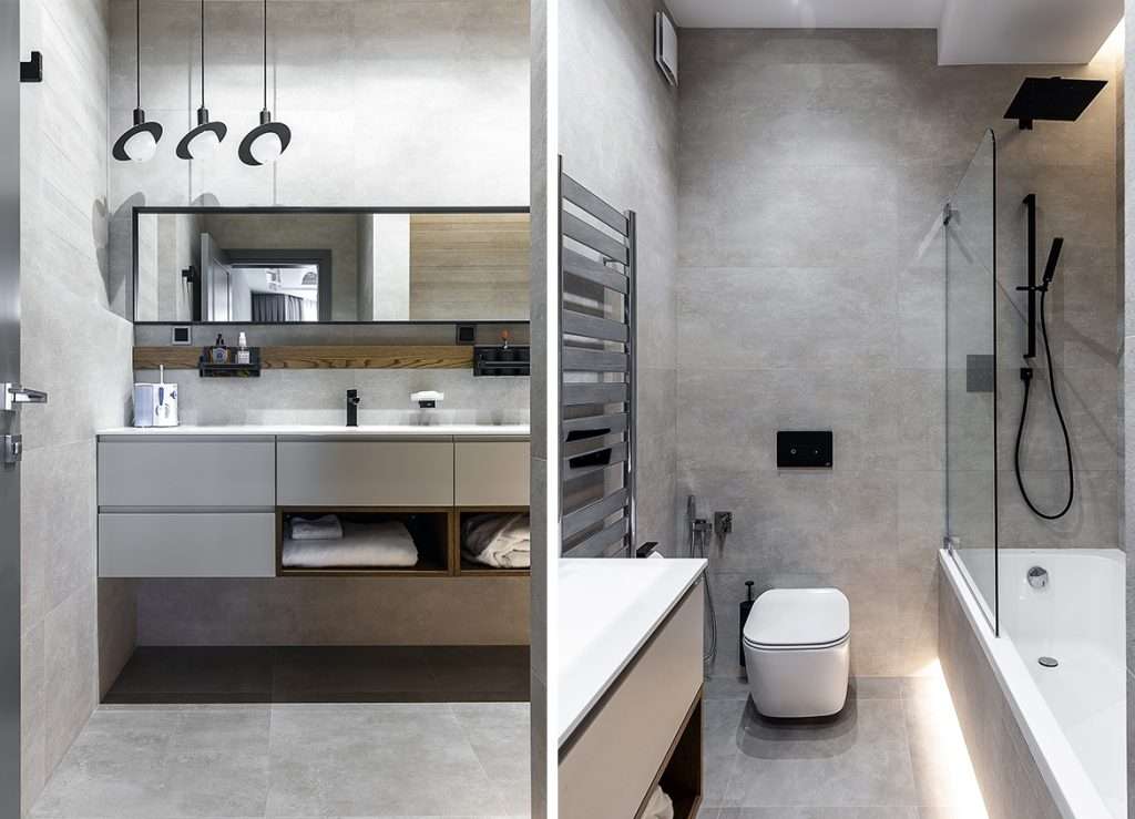 - Светлые цвета: Белый, бежевый, светло-серый и другие светлые цвета визуально увеличивают пространство и делают ванную комнату более светлой и просторной.